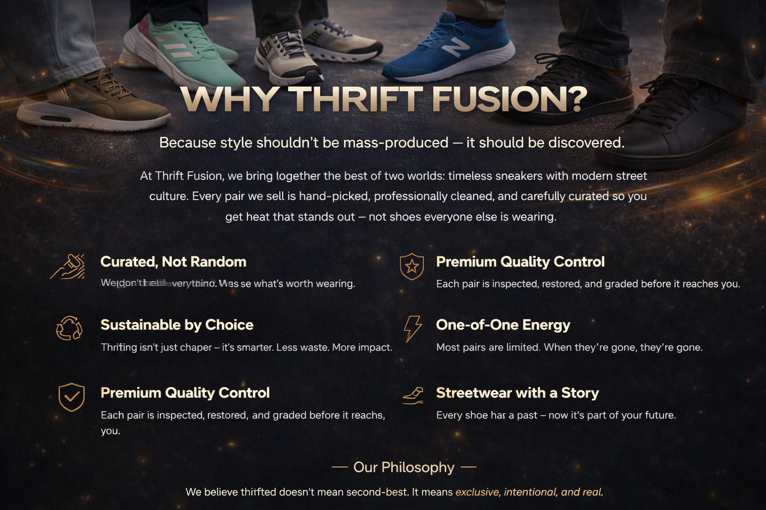 We sell 100% original branded thrifted sneakers from top brands like Nike, Puma, Adidas, and New Balance, all professionally cleaned and in like-new condition.